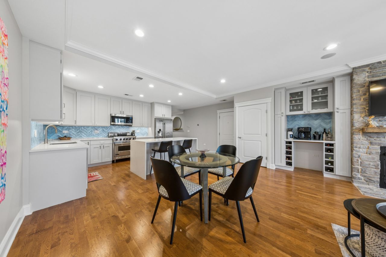 Beautifully updated 3-bedroom, 2-bathroom residence in an intimate boutique elevator building in the heart of Lincoln Park. This thoughtfully designed home features a bright, open layout with hardwood floors throughout and an abundance of natural light from both north and south exposures. The renovated kitchen offers a perfect blend of style and functionality, while the stunning, fully renovated bathrooms showcase high-end finishes and a sophisticated, spa-like feel and heated floors. The spacious living and dining areas flow seamlessly to a private balcony-ideal for grilling, relaxing, and soaking up the sun. All three bedrooms provide comfortable living with flexibility for guests, a home office, or additional living space. Additional highlights include in-unit laundry, a heated attached garage parking space, and the convenience of elevator access. Ideally located close to the best of Lincoln Park's shopping, restaurants, and cafes, this home offers the perfect combination of comfort, style, and unbeatable location.